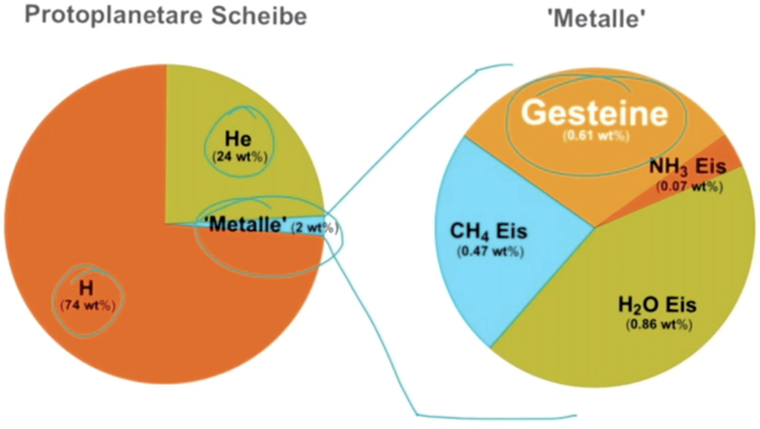 Wie in etwa ist die protoplanetare Scheibe chemisch zusammen gesetzt?