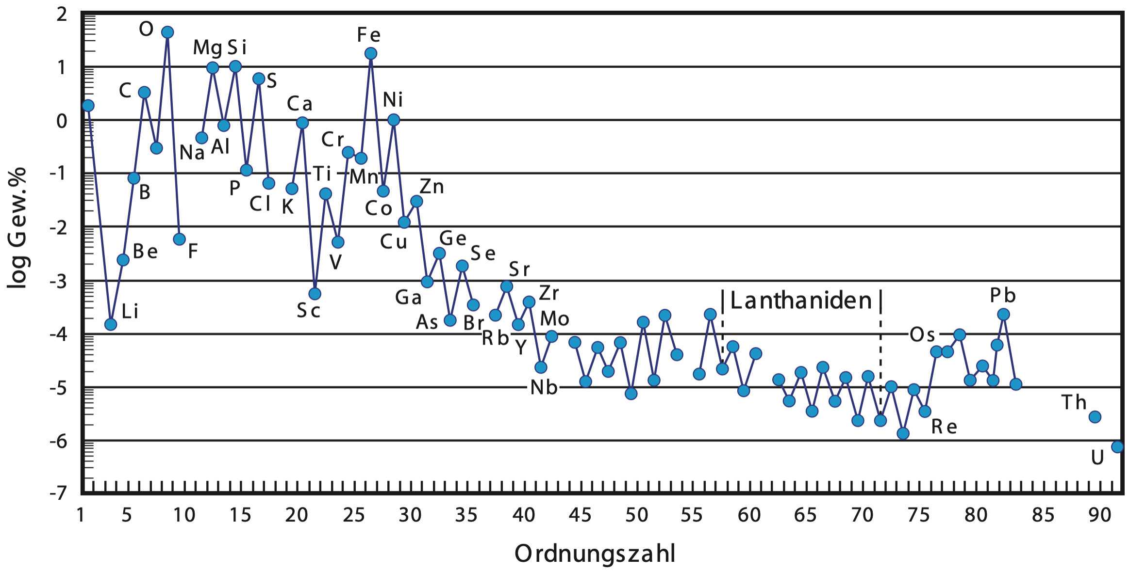 Die Häufigkeit für die Geochemie relevanter Elemente